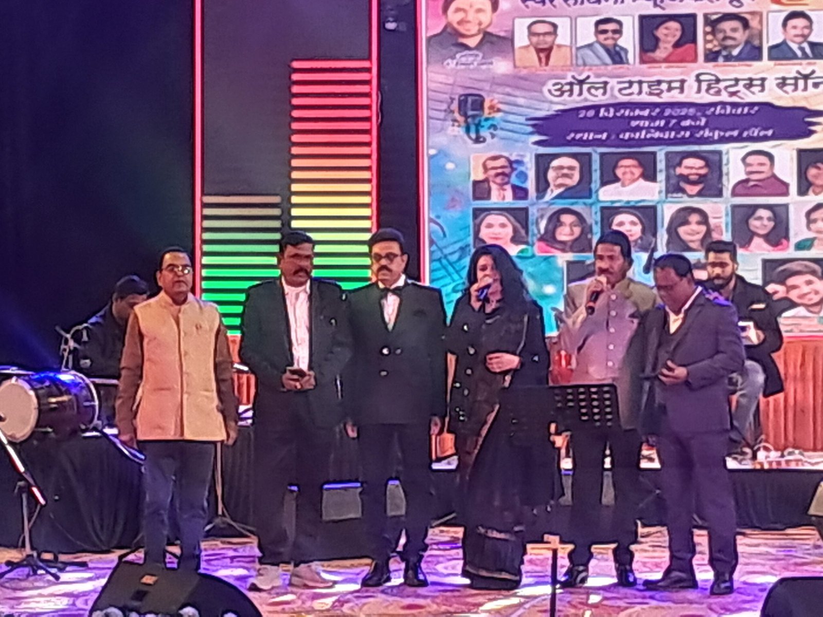 उज्जैन स्वर साधना हम परिवार द्वारा कालिदास अकादमी के पंडित सूर्यनारायण संकुल हॉल में रविवार शाम 7 बजे से ऑल टाइम हिट्स सॉन्ग का द्वारा नए एवं पुराने गीतों की प्रस्तुतिआयोजन किया गया जिसके मुख्य अतिथि समाजसेवी महेश शीतलानी कलाकार हेमंत व्यास जी थे सर्वप्रथम मां सरस्वती को दीप प्रजलित एवं पुष्पाल अर्पण के पश्चात सर्वप्रथम हम परिवार के कलाकारों द्वारा इतनी शक्ति हमें देना दाता मनका का विश्वास कम ना हो, आई मेहरबा बैठिए जने जा चढ़ती जवानी मेरी चाल मस्तानी लोग कहते में शराबी हु अरे दीवानो मुझे पहचानो मैं हूं डॉन पर्दा है पर्दा है पर्दाह तेरे हाथों में पहन चूड़ियां आदि गीतों की प्रस्तुति सस्था के निरंजन सरसिया, शैलेंद्र दियोधर और प्रवीण पंड्या ललित सिसोदिया, प्रीति दीक्षित, हेमराज राठौर सहित संजय जी वैभवि कलाकार एवं बीस से अधिक कलाकार ने प्रस्तुति दी। संगीत संयोजन जयेंद्र रावल ( गोलू भैया) मुन्ना भैया एवं उनकी टीम का विशेष योगदान रहा कार्यक्रम का मुख्य आकर्षण संस्था के मेंबर द्वारा बीच-बीच में प्रशनो के दर्शकों द्वारा सही उत्तर देने वालों को संस्था की ओर से विशेष पुरस्कार वितरण किये गया है श्रोता गीतों पर नाचने लगे