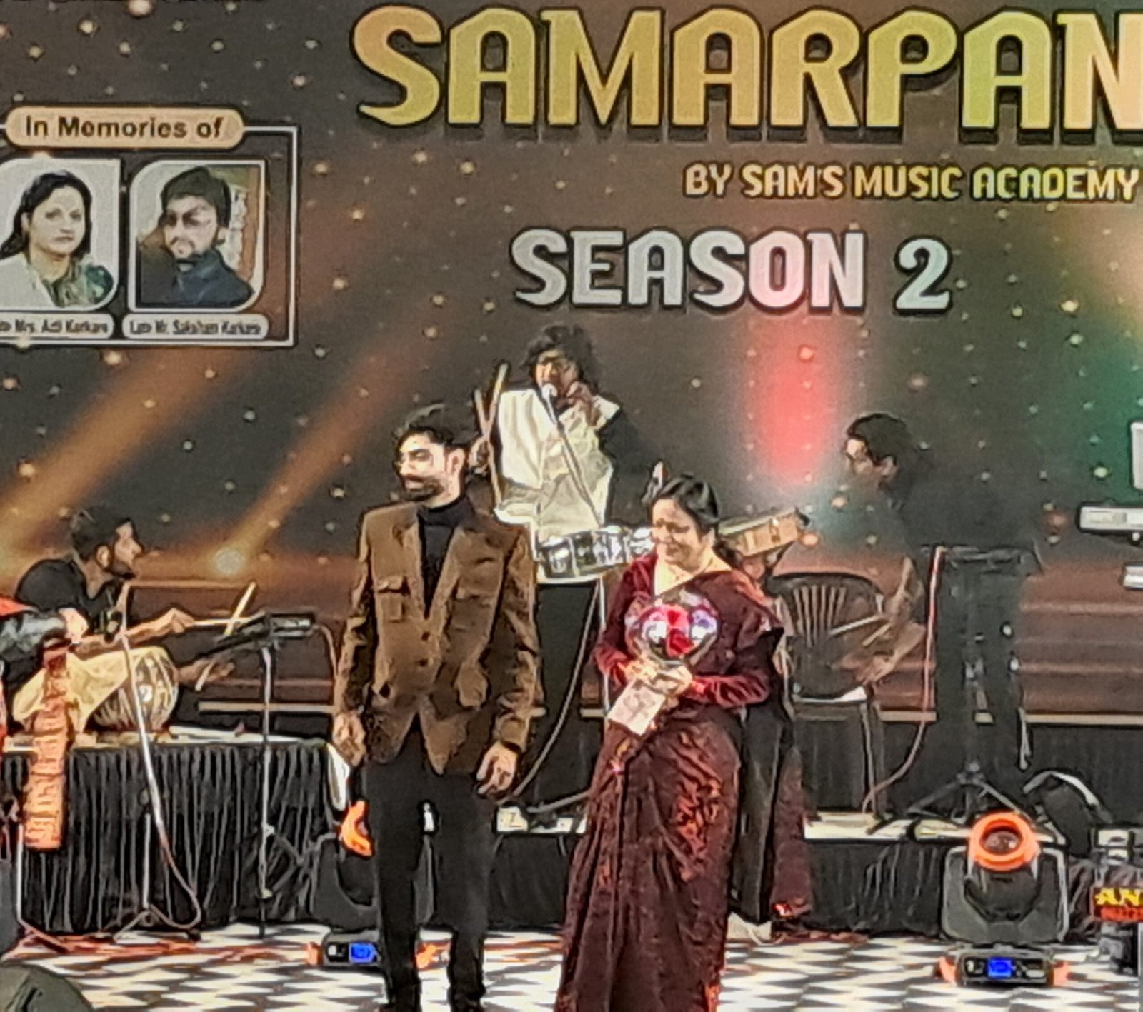 उज्जैन कालिदास अकादमी संकुल हाल में सैम्स अकादमी की प्रसूति समर्पण 2 भक्ति की और लहरिया स्वर्गीय श्रीमती आरती करकरें स्वर्गीय श्री समक्ष करकरें संरक्षक स्वर्गीय श्री मिलिंद करकरें के चित्र पर माल्यार्पण अर्पण कर कार्यक्रम की शुरुआत की संगीत संयोजक जयंत रावल गोलू भैया निर्देशक संभाव करकरें मैं जानकारी देते हुए बताया की कार्यक्रम के मुख्य अतिथि समन्वय श्री हर्ष मिश्रा गायक समाजसेवी महेश सीतलानी थिएटर निर्देश श्रीमती प्रगति मंगल सहायक महासचिव सुविधा कर्ता श्री विजय जोशी गायक एवं गायक कलाकार सावन कुमार रवि चौबे अथर्व करंदीकर स्वाति दुबे सुदेशना दत्ता लक्षिता जोशी नियंगी कुशवाह कुशिका जैन मुस्कान अकोडिया अपने सदाबहार गीतों की प्रस्तुति दी