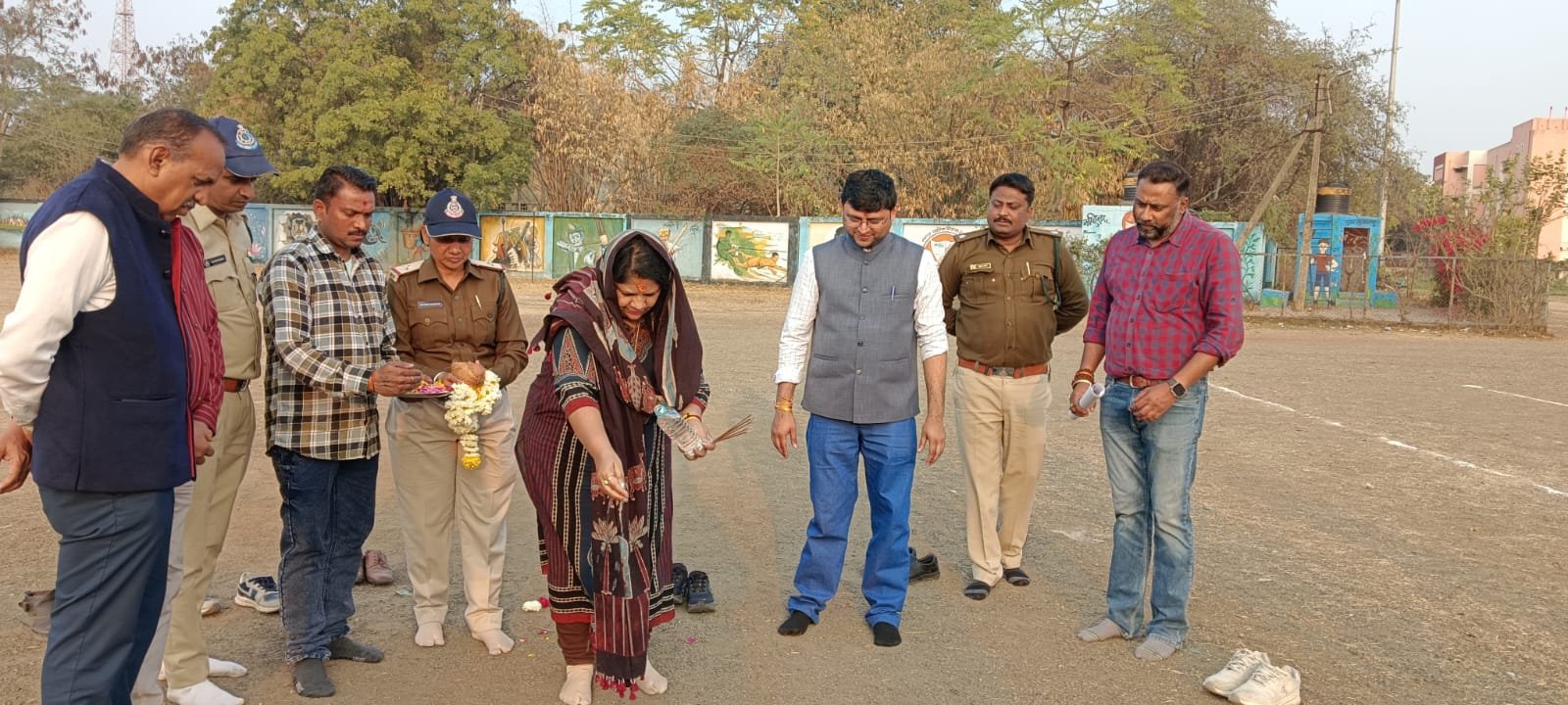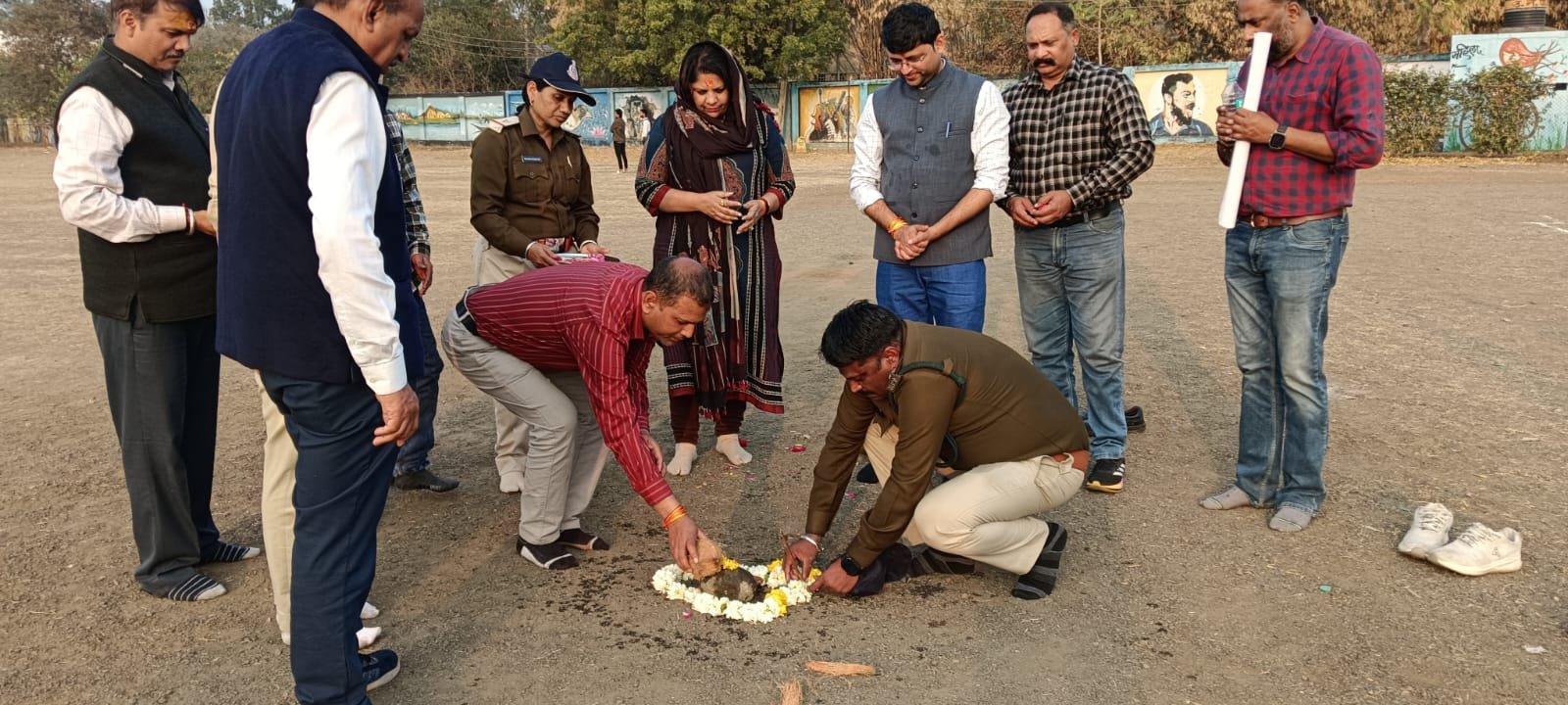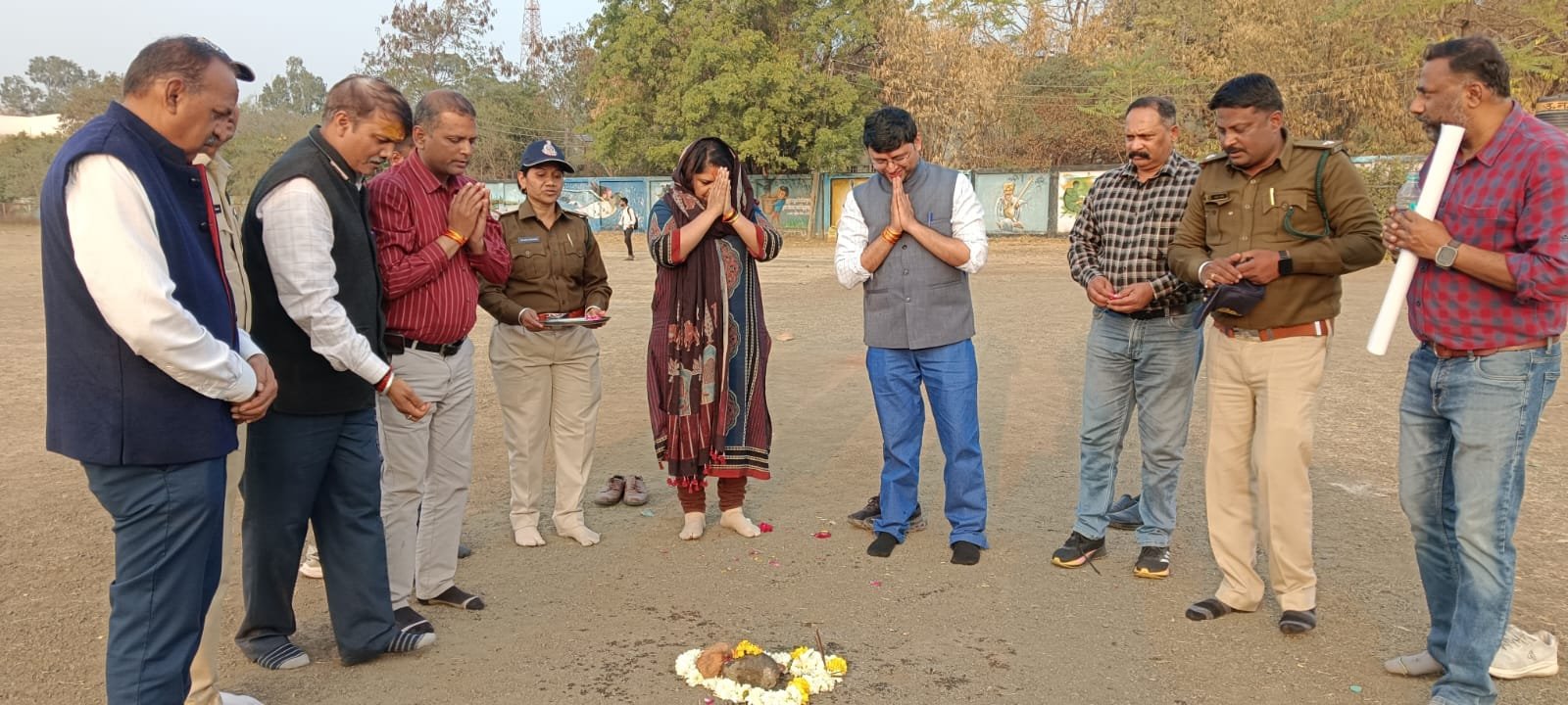 उज्जैन दिनांक 5 फरवरी को श्रीमती समिता राजोरा मैडम जी एम डी लघु वन वनोपज संघ भोपाल के श्री आलोक पाठक वन संरक्षक श्री अनुराग तिवारी डीएफओ विक्रम सिंह सोलंकी एसडीओ द्वारा दशहरा मैदान उज्जैन पर दिनांक 12 से 16 फरवरी तक चलने वाले राज्य स्तरीय वन मेला का भूमि पूजन दशहरा मैदान पर किया गया कार्यक्रम में जीवन सिंह पोलाय रेंजर रजनी चौहान डिप्टी रेंजर अनिल सेन डिप्टी रेंजर वनरक्षक अलंकार परमार एवं अन्य अधिनस्थ स्टाफ मौके पर उपस्थित था